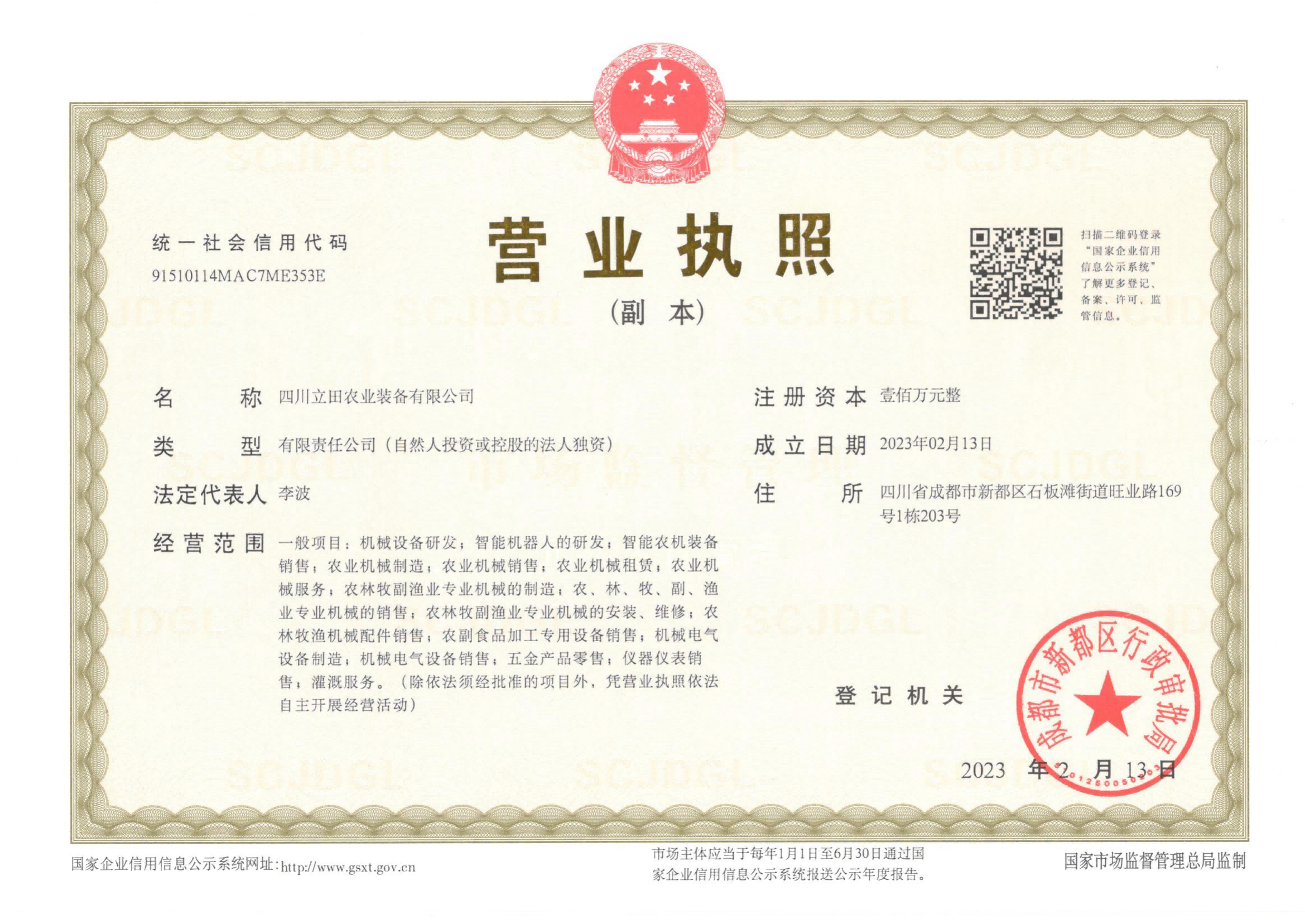 四川立田农业装备有限公司(以下简称立田农机)是成都齐沃农业科技有限公司旗下全资子公司。